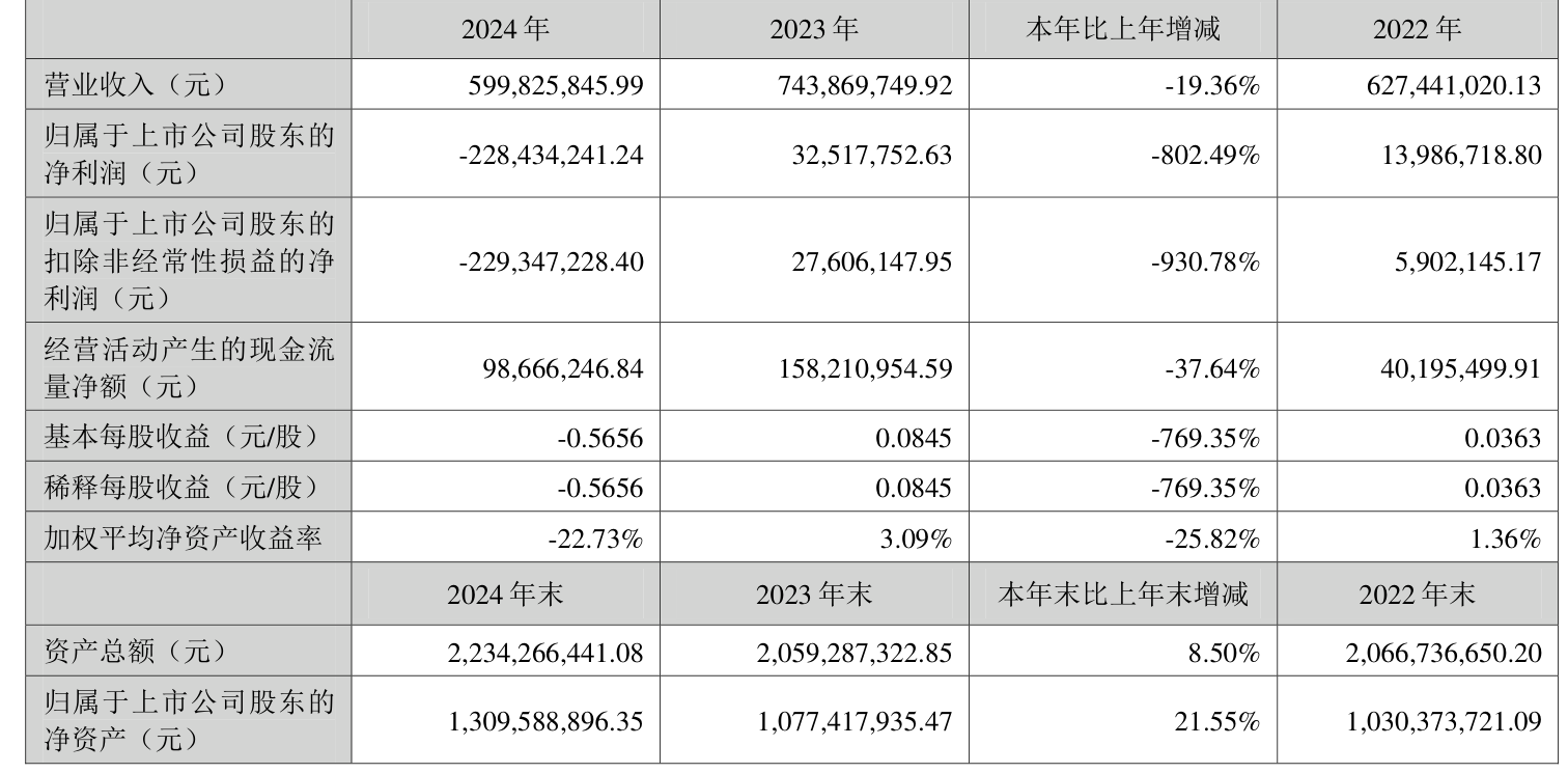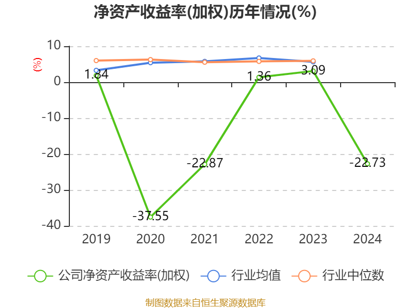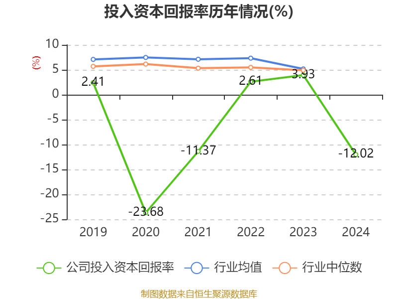 数据显示,2024年公司加权平均净资产收益率为-22.73%,较上年同期下降25.82个百分点。公司2024年投入资本回报率为-12.02%,较上年同期下降15.95个百分点。