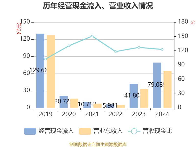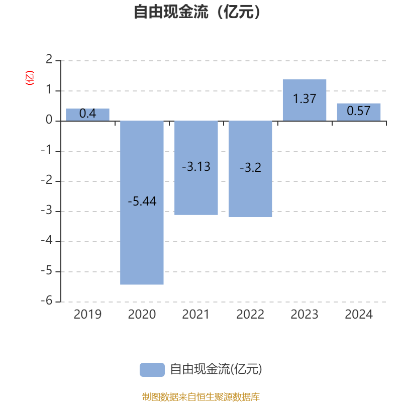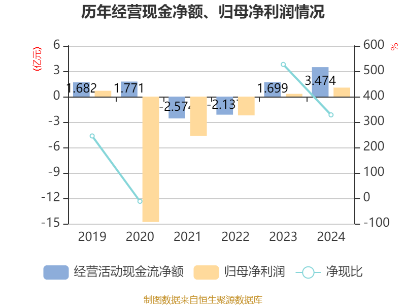 截至2024年,公司经营活动现金流净额为3.47亿元,同比增长104.45%;筹资活动现金流净额-2.87亿元,同比减少1.41亿元;投资活动现金流净额192.64万元,上年同期为-8835.37万元。