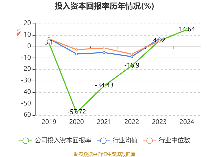 数据显示,2024年公司加权平均净资产收益率为13.19%,较上年同期上升8.88个百分点。公司2024年投入资本回报率为14.64%,较上年同期上升9.72个百分点。