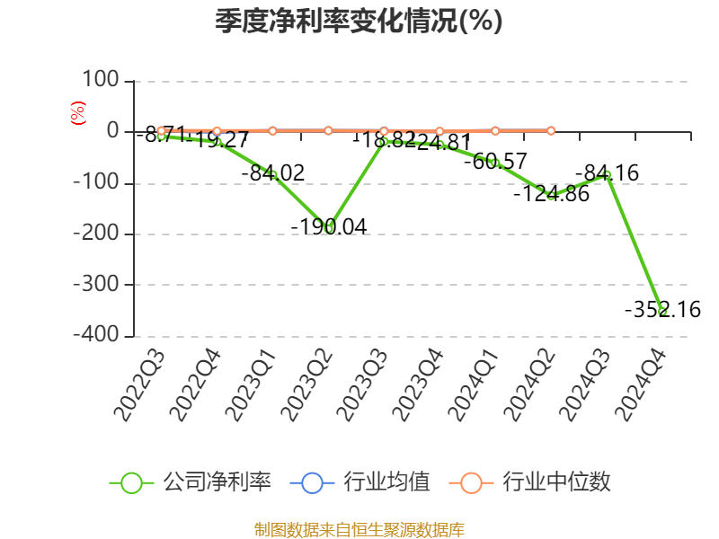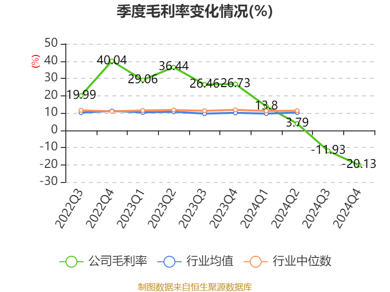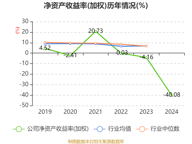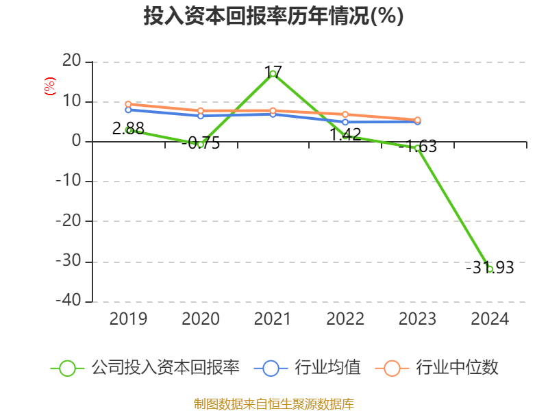 数据显示,2024年公司加权平均净资产收益率为-40.08%,较上年同期下降35.92个百分点。公司2024年投入资本回报率为-31.93%,较上年同期下降30.3个百分点。