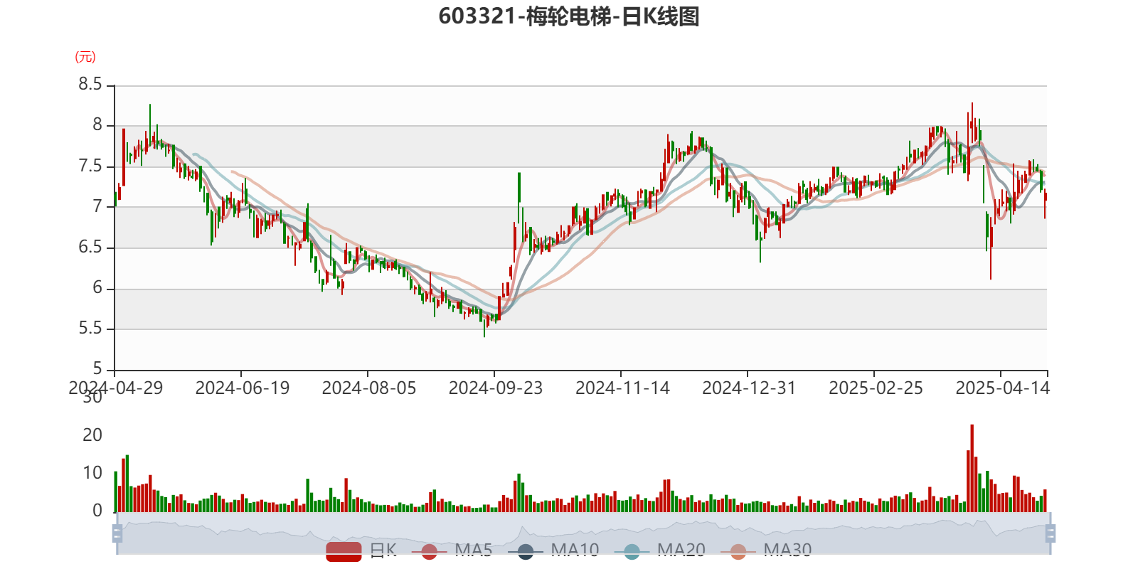 以4月28日收盘价计算,梅轮电梯目前市盈率(TTM)约为16.49倍,市净率(LF)约1.8倍,市销率(TTM)约2.73倍。