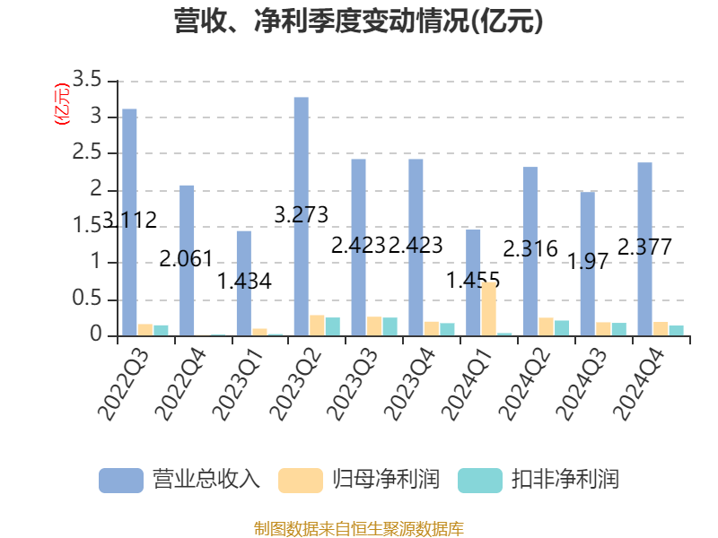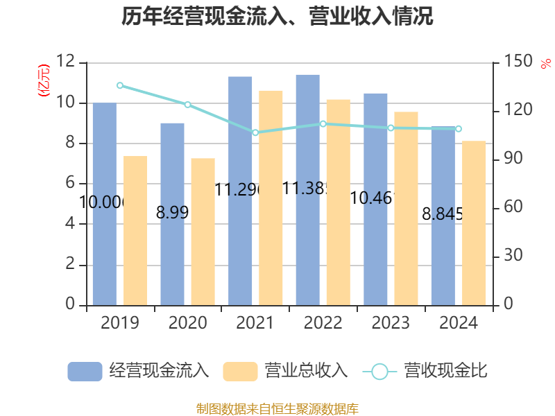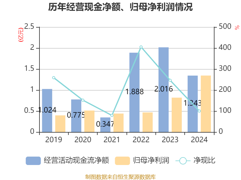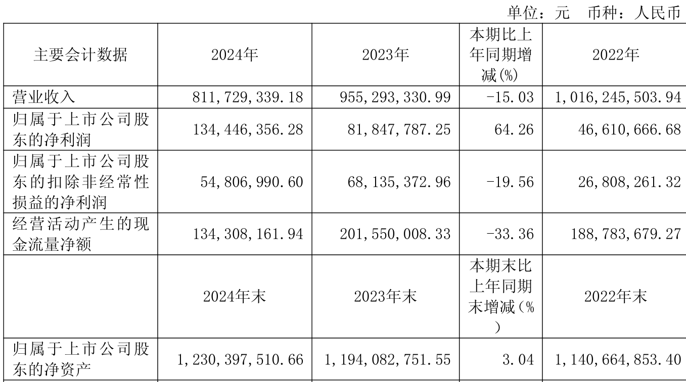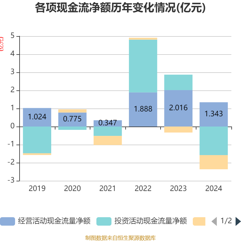 截至2024年,公司经营活动现金流净额为1.34亿元,同比下降33.36%;筹资活动现金流净额-7816.23万元,同比减少4493.07万元;投资活动现金流净额-1.58亿元,上年同期为8539.82万元。