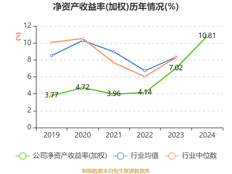 数据显示,2024年公司加权平均净资产收益率为10.81%,较上年同期上升3.79个百分点。公司2024年投入资本回报率为9.29%,较上年同期上升4.47个百分点。