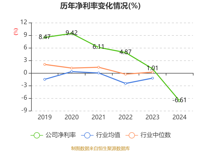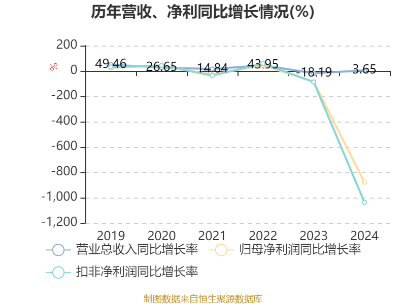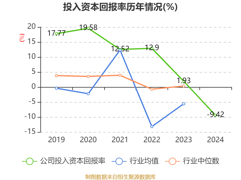 数据显示,2024年公司加权平均净资产收益率为-12.9%,较上年同期下降15.35个百分点。公司2024年投入资本回报率为-9.42%,较上年同期下降11.35个百分点。