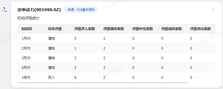 增持评级家数:在近1年内,有2家机构给予宗申动力“增持”评级。