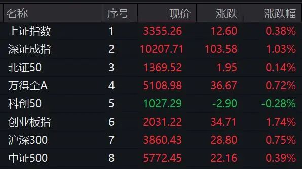 今日早盘,A股低开高走,主要股指涨跌互现,上证指数、深证成指、创业板指等小幅上扬,科创50则微幅飘绿。上涨个股远多于下跌个股,市场成交呈萎缩趋势。