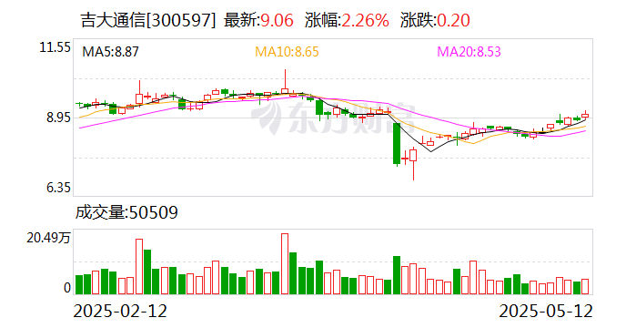 证券时报·数据宝统计,截至发稿,吉大通信收盘价为9.06元,上涨2.26%,筹码持续集中以来股价累计下跌6.31%。具体到各交易日,19次上涨,11次下跌。