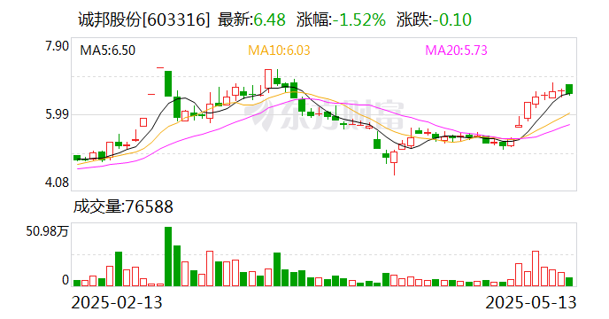 2025年一季度,诚邦股份实现收入9701万元,归母净利润296万元。