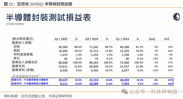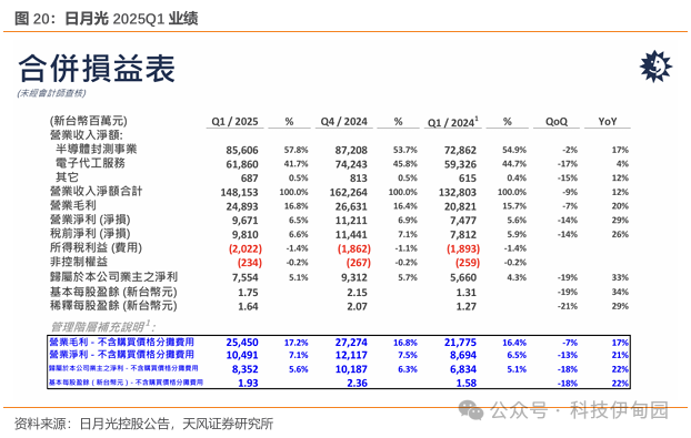 4.1. 日月光:Q1净利润同比增33%,封测业务稳健增长