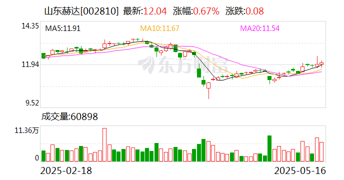 山东赫达(SZ 002810,收盘价:12.04元)5月16日晚间发布公告称,2025年5月16日,公司首次通过股份回购专用证券账户以集中竞价交易方式回购公司股份约43万股,约占公司总股本(以2025年5月15日收市后公司总股本约3.48亿股为依据计算)的0.1245%,其中,最高成交价为12.07元/股,最低成交价为11.8元/股,成交总金额约517万元。