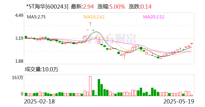 *ST海华(维权)再度涨停,6个交易日内录得3个涨停,累计涨幅为17.60%,累计换手率为35.72%。截至9:35,该股今日成交量861.24万股,成交金额2511.24万元,换手率1.96%。最新A股总市值达12.90亿元。