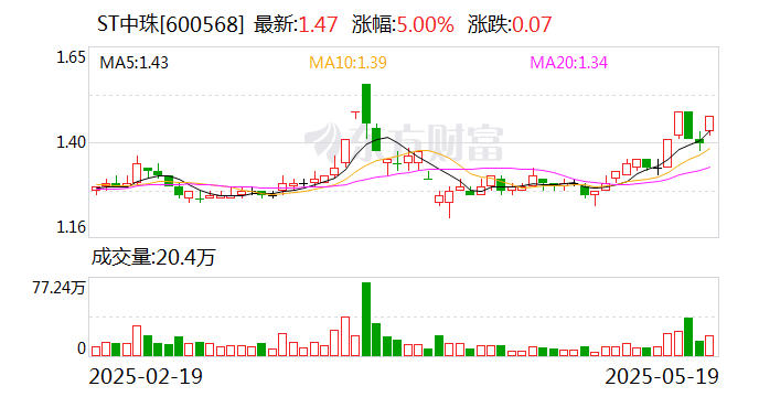 ST中珠再度涨停,5个交易日内录得3个涨停,累计涨幅为9.70%,累计换手率为6.26%。截至9:32,该股今日成交量364.68万股,成交金额526.52万元,换手率0.22%。最新A股总市值达29.30亿元,A股流通市值24.54亿元。