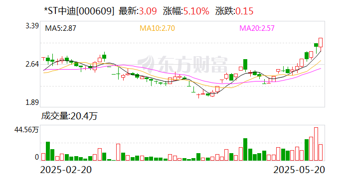 *ST中迪(维权)再度涨停,5个交易日内录得3个涨停,累计涨幅为18.85%,累计换手率为44.52%。截至10:19,该股今日成交量1914.62万股,成交金额5625.24万元,换手率6.58%。最新A股总市值达9.25亿元,A股流通市值8.99亿元。