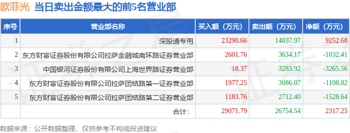 证券之星消息,沪深交易所2025年5月20日公布的交易公开信息显示,欧菲光(002456)因日涨幅偏离值达到7%的前5只证券登上龙虎榜。此次是近5个交易日内第1次上榜。