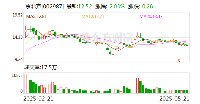 京北方(SZ 002987,收盘价:12.52元)5月21日晚间发布公告称,京北方信息技术股份有限公司董事、副总经理赵龙虎先生(持有约231万股,占公司总股本的0.27%)计划自本公告披露之日起十五个交易日后的三个月内通过集中竞价交易方式减持其持有的公司股份不超过约53万股,即不超过公司总股本的0.061%;副总经理曹景广先生(持有约28万股,占公司总股本的0.03%)计划自本公告披露之日起十五个交易日后的三个月内通过集中竞价交易方式减持其持有的公司股份不超过约4.34万股,即不超过公司总股本的0.005%。