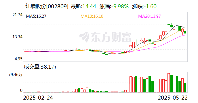 红墙股份今日跌停,全天换手率27.64%,成交额5.64亿元,振幅7.62%。龙虎榜数据显示,机构净卖出1429.06万元,营业部席位合计净买入27.01万元。