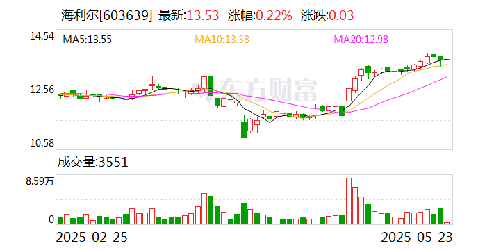 2025年一季度,海利尔实现收入12.64亿元,归母净利润1.05亿元。