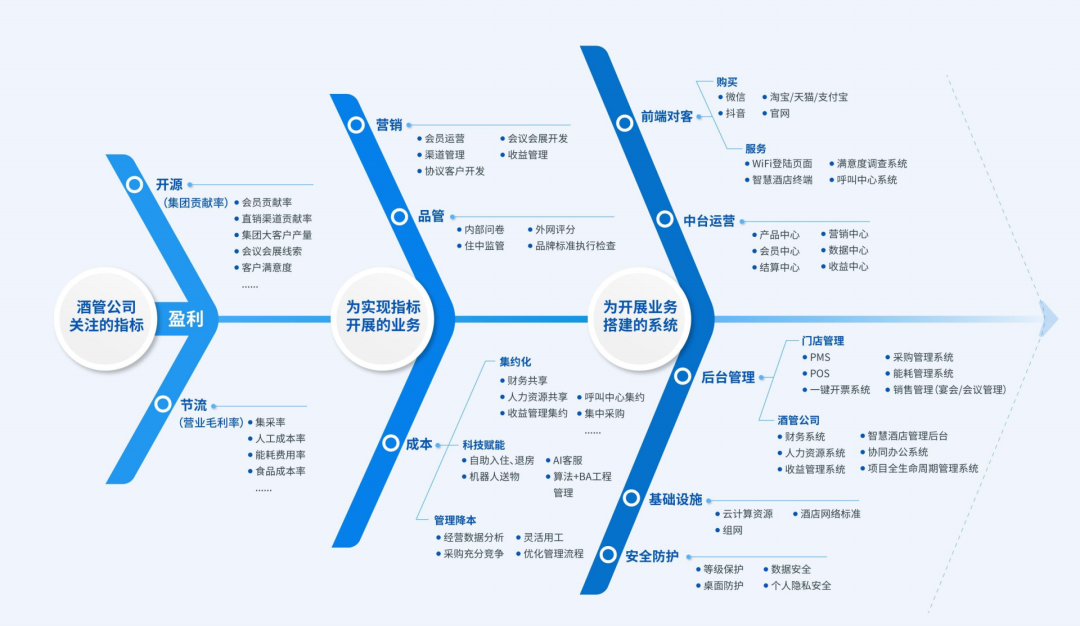 这里,何雯推荐企业可以通过三位一体的方式去理解其每一项数字化投资决策,即酒店和酒店管理公司所关注的核心的战略指标是有哪些?为了实现这些指标,需要开展的业务有哪些?为了支撑相关业务,需要搭建的系统有哪些?以及企业想要提高效率,要去优化的流程有哪些,需要突破的一些关键的节点在哪些等等。