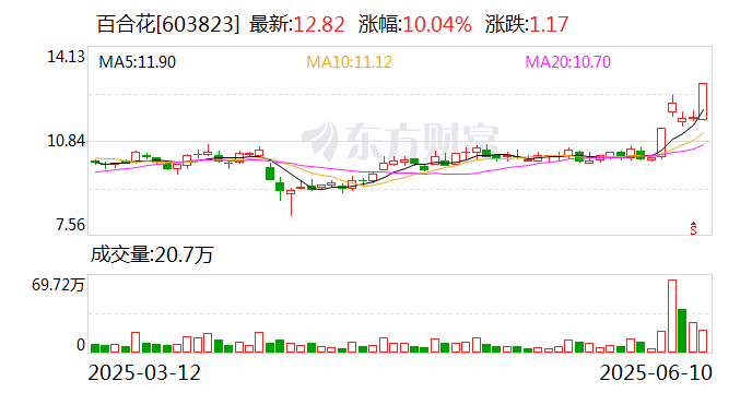 百合花(603823)今日涨停,全天换手率5.03%,成交额2.55亿元,振幅11.19%。龙虎榜数据显示,营业部席位合计净买入2790.93万元。