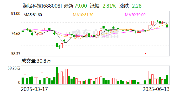 证券时报·数据宝统计显示,澜起科技今日收盘价为79.00元,下跌2.81%,日换手率为2.69%,成交额为24.60亿元,全天主力资金净流出5311.40万元,近5日该股累计下跌5.77%,近5日资金合计净流出9372.04万元。