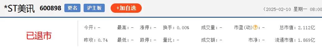 2月10日,黄实控的国美通讯,遭交易所摘牌。上交所基于连续20个交易日收盘市值低于5亿元,裁定其退市命运。