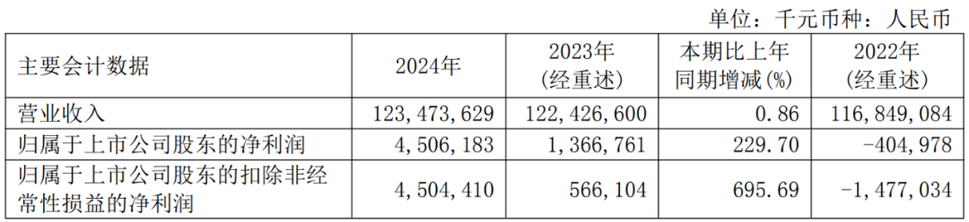 中国风电新闻网讯:大唐发电近日披露2024年年度报告。2024年,公司实现营业总收入1234.74亿元,同比增长0.86%;归母净利润45.06亿元,同比增长229.7%。