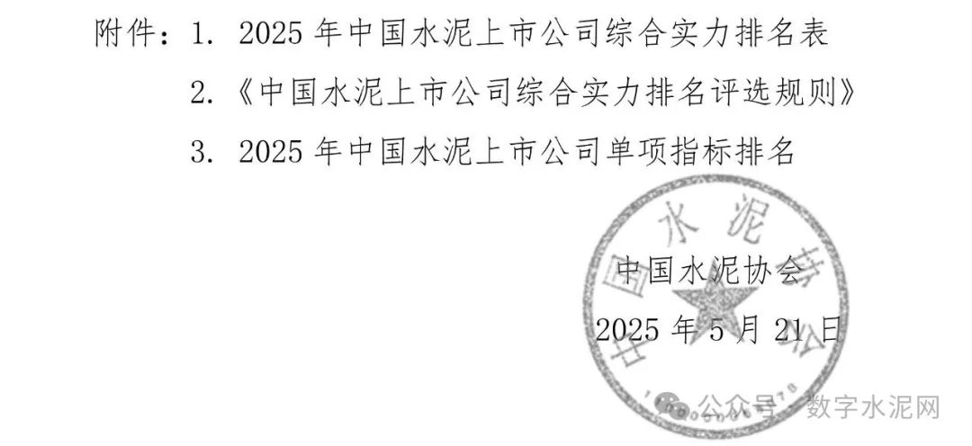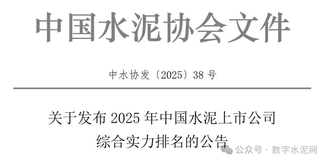为展示中国水泥行业上市公司的竞争实力,鼓励水泥企业做优做强,培育具有国际竞争力和影响力的龙头企业,推动水泥行业绿色低碳高质量发展,中国水泥协会本着“公开、公正、科学”的原则,组织业内专家、证券金融界专家,共同进行了论证评选,评选单位是以水泥为主业的独立上市公司(大陆和香港)。今年综合实力的评选指标包括:水泥产品销量、利润总额、净利润、资产、市值。现将2025年中国水泥上市公司综合实力排名结果予以公告。