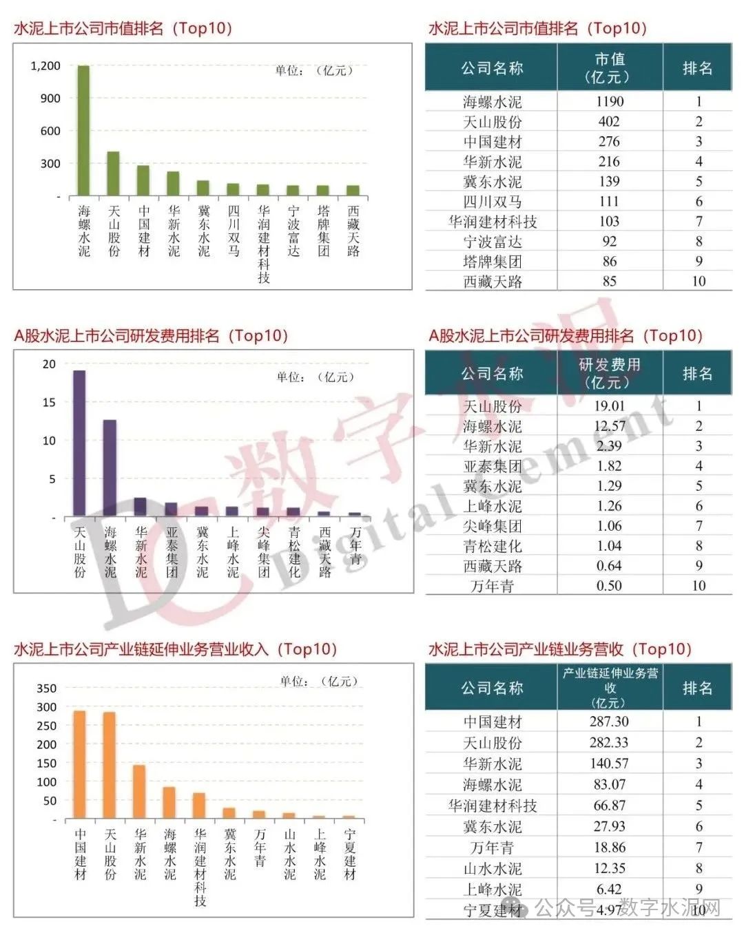日前,中国水泥协会发布了《2025年中国水泥上市公司综合实力排名的公告》称,从2025年中国水泥上市公司综合实力排名结果来看,排名前5位的公司中,海螺水泥继续稳居首位,中国建材、华新水泥、天山股份和华润建材科技分列第2~5位,其中,海螺水泥作为行业龙头企业,业绩韧性较强,综合分数领先优势扩大;华新水泥积极拓展骨料及海外业务,抗周期能力凸显,综合分数超越天山股份,排名上升1位至第3位;天山股份排名相应下降1位至第4位。西部水泥利润逆市增长,排名较上年上升2位至第6位;上峰水泥和塔牌集团位列第7~8位,排名均较上年下降1位;山水水泥大幅减亏,排名较上年上升10位,时隔一年重回水泥上市公司前十行列,排名第9位;中国能建水泥产量增长,市场份额提升,排名较上年上升3位至第10位,进入水泥上市公司前十行列。此外,冀东水泥实现减亏,排名较上年上升4位;万年青、四川双马和亚洲水泥盈利下滑幅度较大,排名较上年下降3~5位,其中万年青和四川双马排名降至前十以外;西藏天路、福建水泥和亚泰集团未能扭转亏损局面,继续排名后三位。