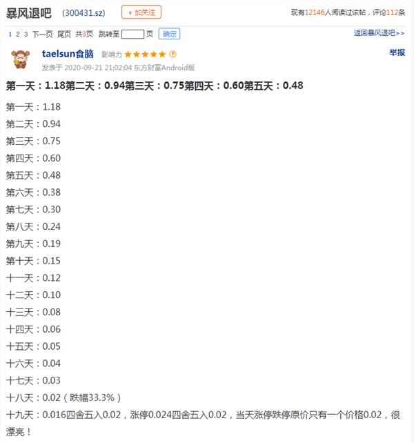 有股民也在股吧里计算跌停价:(点击进入暴风退吧>>)