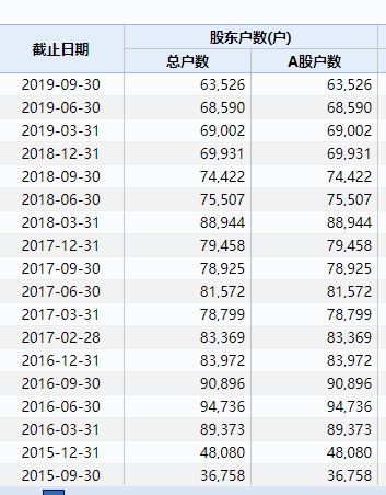 根据最新一份披露的财报,截至2019年9月30日,暴风退仍有6.35万股东。