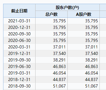 数据显示,截至2021年3月31日,公司股东人数仍有3.58万户,人均流通股持股2.9万股。