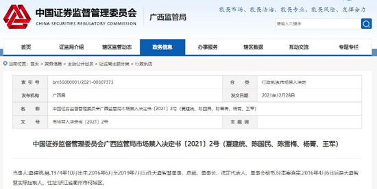 依据2005年《证券法》第二百三十三条和《证券市场禁入规定》(证监会令第115号)第三条、第五条的规定,广西证监局决定: