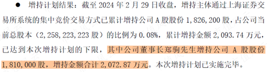 这还不算完,包括董事长在内的8位高管,也在2月29日完成了增持计划,合计增持金额2,073万元。