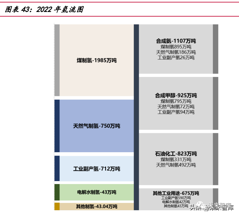 目前中国氢产能主要分布于东部和中部地区,以化石能源制氢和工业副产氢为主, 山东省氢产能位居全国第一,年产量超 500 万吨。我国合成氨产能主要集中在华东, 中南,华北等氮肥消费量较大的地区,甲醇市场中华东、西北和山东的需求量位居前 列,目前,氢产能与下游主要应用地域融合程度较高。将来,电氢产能受限于风光资源,西北地区实现电氢量产,将出现氢产能与下游 应用出现地域错配,因此,电氢想要实现产业替代还须考虑运输成本或下游配套成本。