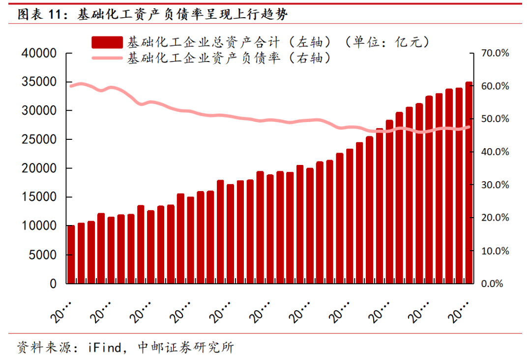 供给端,压力仍存,拐点可期。历经2020年-2021年景气周期,基础化工行业资本开支明显增长,截止2024年Q1末,基础化工在建工程/固定资产为33.55%,处于近十年高位。2022年-2024年Q1,受盈利能力下降影响,2022年Q1基础化工经营性现金流净额出现负增长,截止2024年Q1末,连五个季度为负增长。在此情况下,基础化工企业并未停止扩张步伐,选择持续加杠杆扩张产能。基础化工行业资产负债率自2022Q4拐点向上,2024年Q1末达到47.44%。