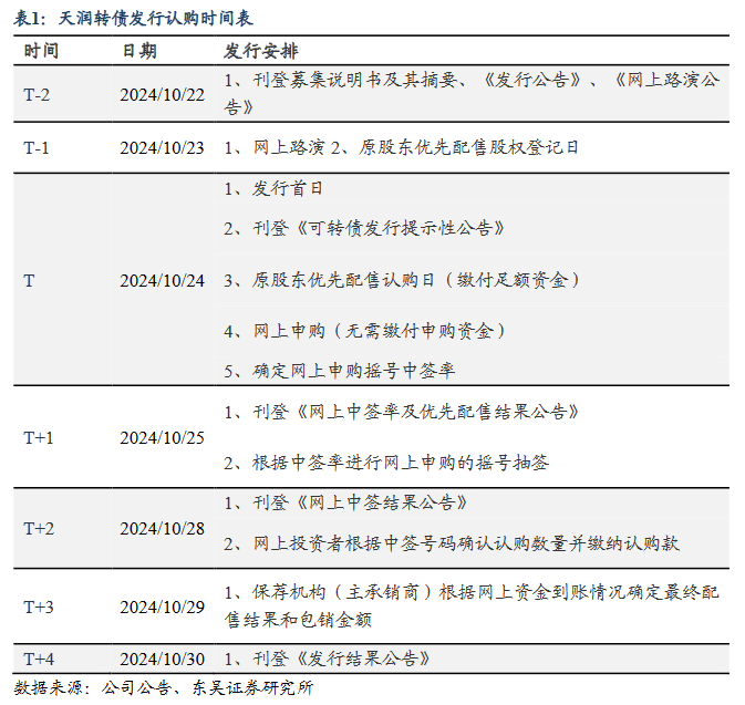 我们预计中签率为0.0046%。天润转债发行总额为9.90亿元,我们预计原股东优先配售比例为63.10%,剩余网上投资者可申购金额为3.65亿元。天润转债仅设置网上发行,近期发行的国检转债(评级AA+,规模8.00亿元)网上申购数约797.47万户,洛凯转债(评级AA-,规模4.03亿元)796.34万户。我们预计天润转债网上有效申购户数为796.91万户,平均单户申购金额100万元,我们预计网上中签率为0.0046%。