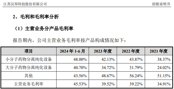 但另一方面招股书也披露,得益于下游生物医药行业旺盛的市场需求和公司多元化产品竞争力的提升,公司主营业务毛利率呈上升态势,2024上半年毛利率为45.53%,比2023年还增加了6个百分点。