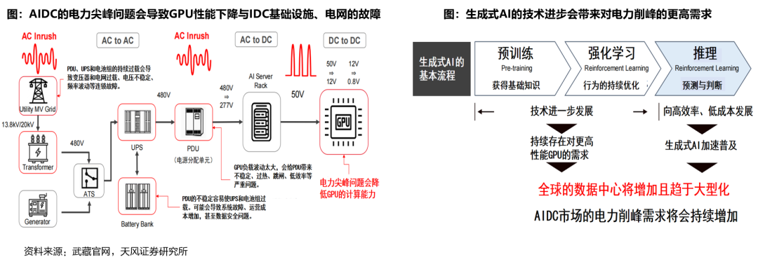 AI产业发展带来对“削峰+备用电源”的高需求。超级电容通过静电作用或电化学反应来储存能量,有着功率密度高、循环寿命长、充放电速度快等一系列令人瞩目的特点,可以在数据中心中充当备用电源,并且相较其他备用电源具备高能量密度、高工作电压、寿命长等优势。并且还能有效解决AIDC的峰值功率问题。