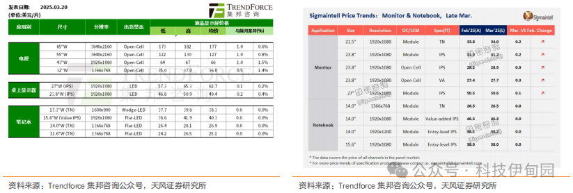1.4. 面板:3月电视面板价格涨势收敛,中尺寸面板全面涨价