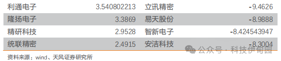 本周(3/21~3/28)消费电子板块跌幅前10的个股为:信维通信/凯旺科技/格林精密/波导股份/博硕科技/朝阳科技/立讯精密/易天股份/智新电子/安洁科技。