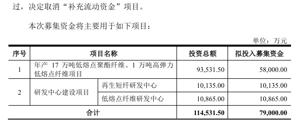 值得注意的是,在首次递表时,天富龙计划募集资金10.9亿元,其中5.8亿元用于年产17万吨低熔点聚酯纤维、1万吨高弹力低熔点纤维项目,1.01亿元和1.09亿元分别用于再生短纤研发中心、低熔点纤维研发中心项目,3亿元用于补充流动资金项目。