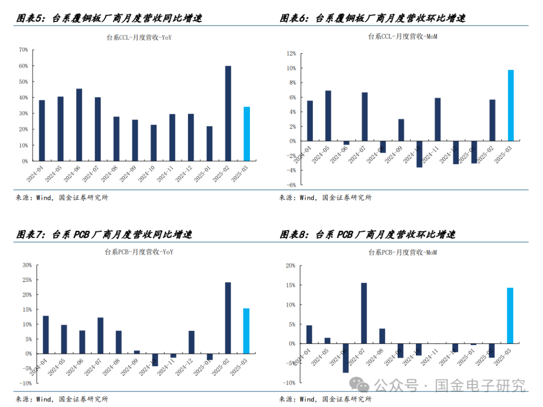 生益科技:覆铜板基础需求迎来修复,强阿尔法盈利进入胜率区间。我们认为当前基础覆铜板行业需求已经进入修复向上阶段。长期还可展望CCL涨价,安全边际充足。打破海外算力覆铜板材料垄断,高端产品开启内化升级趋势。当前AI资本开支相关的覆铜板市场主要由韩国和中国台湾厂商掌握,公司在经过2年左右的产品布局已经成功通过了全球AI相关龙头客户的验证,有望在2025年迎来高端新品放量的成长机会。除AI资本开支外,公司同样在AI端侧有前瞻布局,不仅配合国内手机、PC相关客户研发下一代新产品,同时也在积极配合海外龙头终端客户的研发,有望打破海外覆铜板厂商在端侧产品的垄断地位。AI带来PCB升级,生益电子抓住ASIC放量趋势。AI算力的推出导致高多层PCB、HDI等高端PCB产品的应用空间快速打开,并且在资本开支不断上行、云计算厂商自研ASIC趋势逐渐明显的背景下,ASIC算力产业链将成为未来AI算力增速最快的板块之一。生益电子依靠自己在高多层类产品中的技术实力,成功通过海外ASIC相关产业链突破,从二季度开始营收和利润环比加速变化,预期生益电子有望随着海外ASIC产业链起量而迎来快速增长。