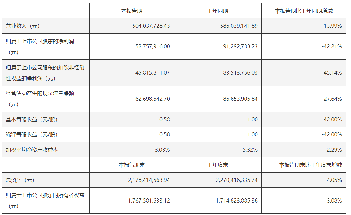 《电鳗财经》关注到,甘源食品发布的2015年一季度报显示,该公司实现营业收入5.04亿元,同比减少13.99%;实现归母净利润5275.79万元,同比减少42.21%。