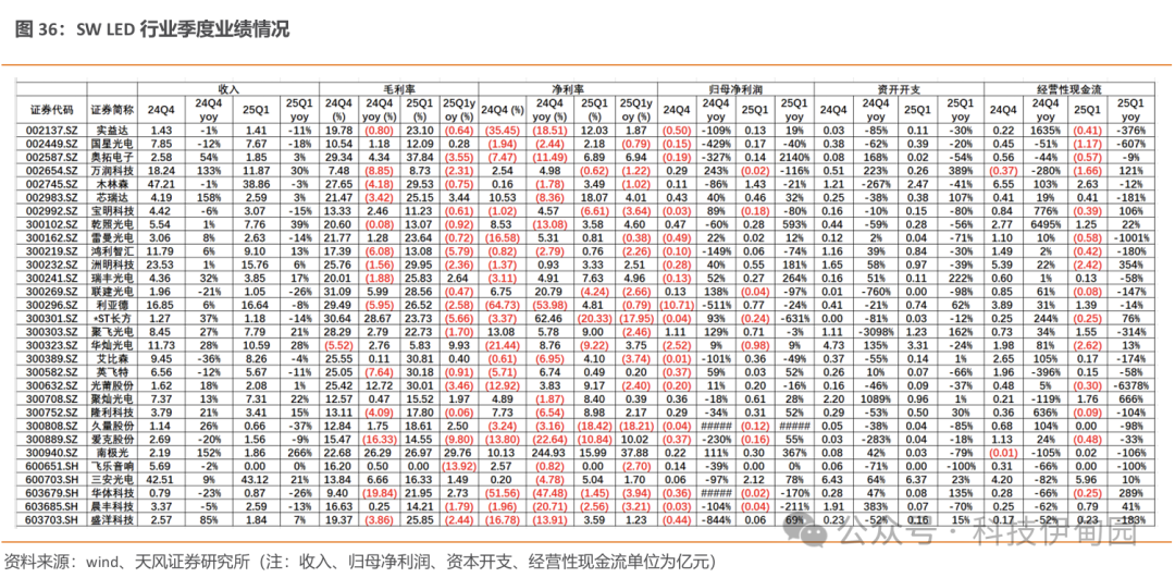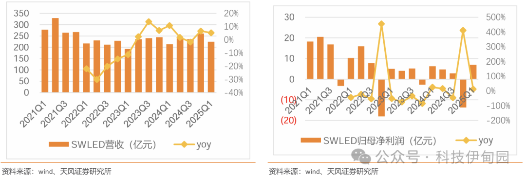 行业盈利能力有所改善,持续看好国补带动产品升级背景下,miniled 等新产品放量对于产业链业绩拉动。25Q1LED板块实现收入227.1亿元,同比+6%。实现归母净利润7亿,同比+15%。