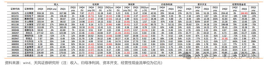 2.2 消费电子公司25Q1业绩总结:业绩及Capex双增,呈现良好成长势头