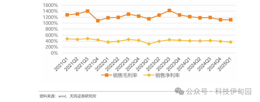 资本开支及存货双高,消费电子行业扩产呈现一定复苏趋势。截至25Q1,消费电子行业存货为2544.38亿元,同比+25.7%,存货规模增速高于收入规模增速,同比增速较上一季度有所提升。在建工程为232亿元,yoy-1.8%。固定资产为2374亿元,yoy+8%,资本开支为208亿元,yoy+29%,体现行业整体投入呈现一定复苏趋势。