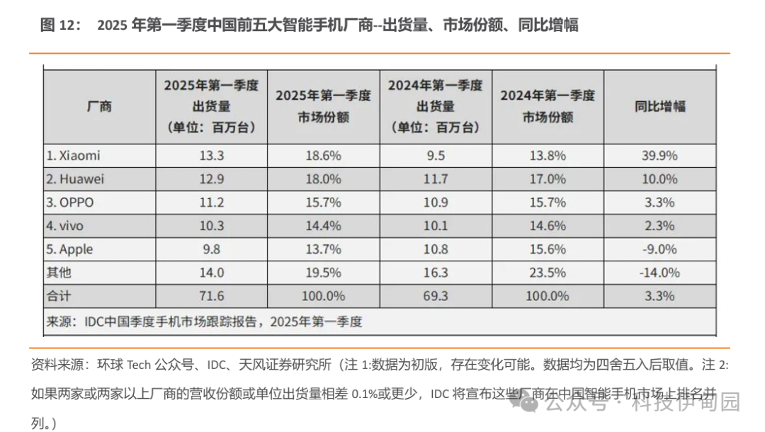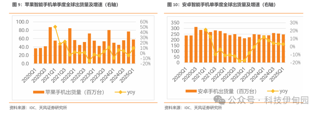 2.1.1 智能手机:苹果25Q1增速达双位数,安卓增速有所放缓