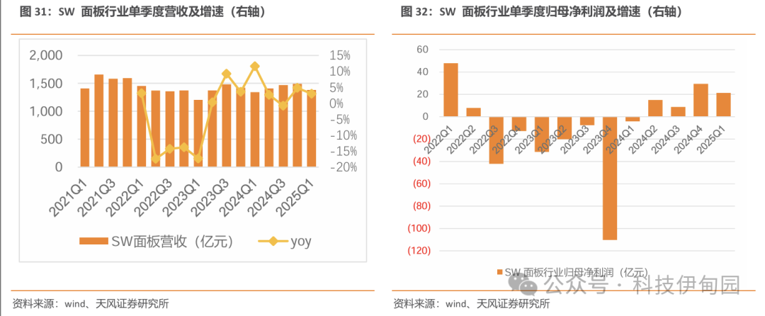面板板块实现营业收入1387.85 亿元,同比+3%。实现归母净利润21.35亿,同比扭亏为盈。