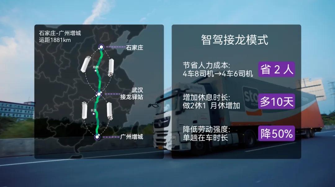 全流程的科技赋能也是功不可没,包括智慧物流、智能客服、智能化应用……比如申通为智能重卡开发的“智驾接龙”,直接把“人车比”下降0.4-0.5,节省20%~30%的人力成本,也更安全、省油。