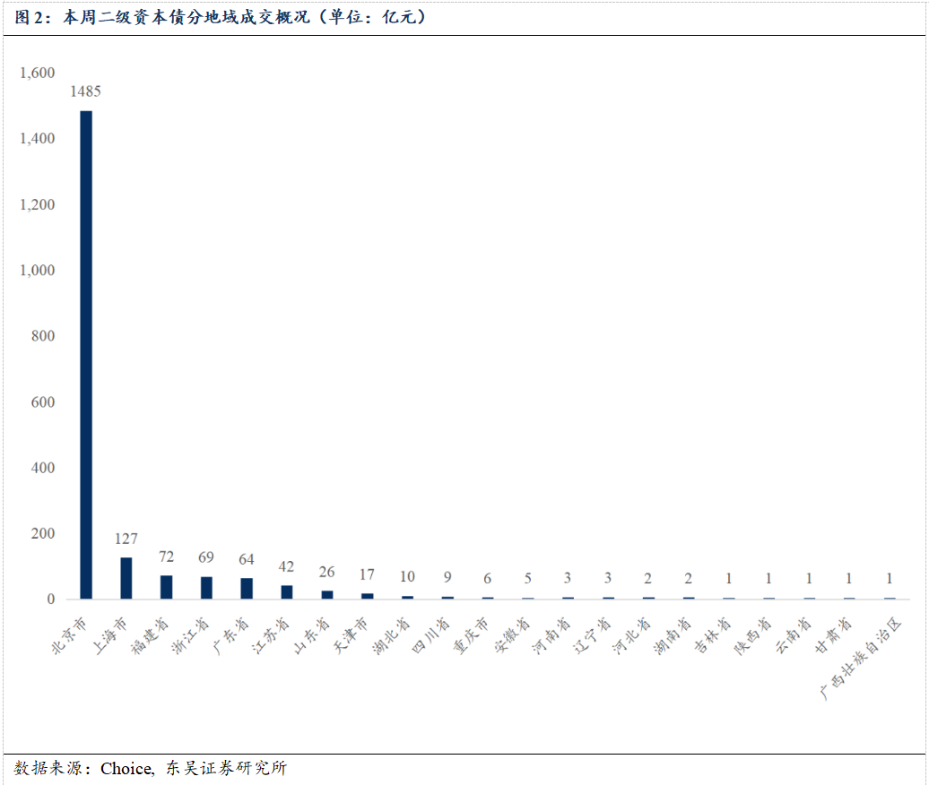 分发行主体地域来看,成交量前三为北京市、上海市和福建省,分别约为1485亿元、127亿元和72亿元。